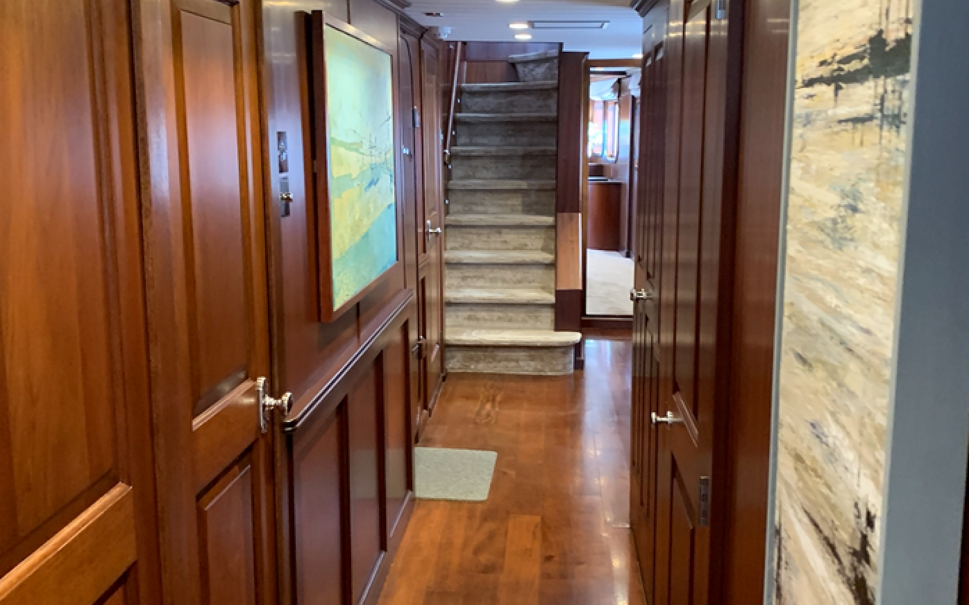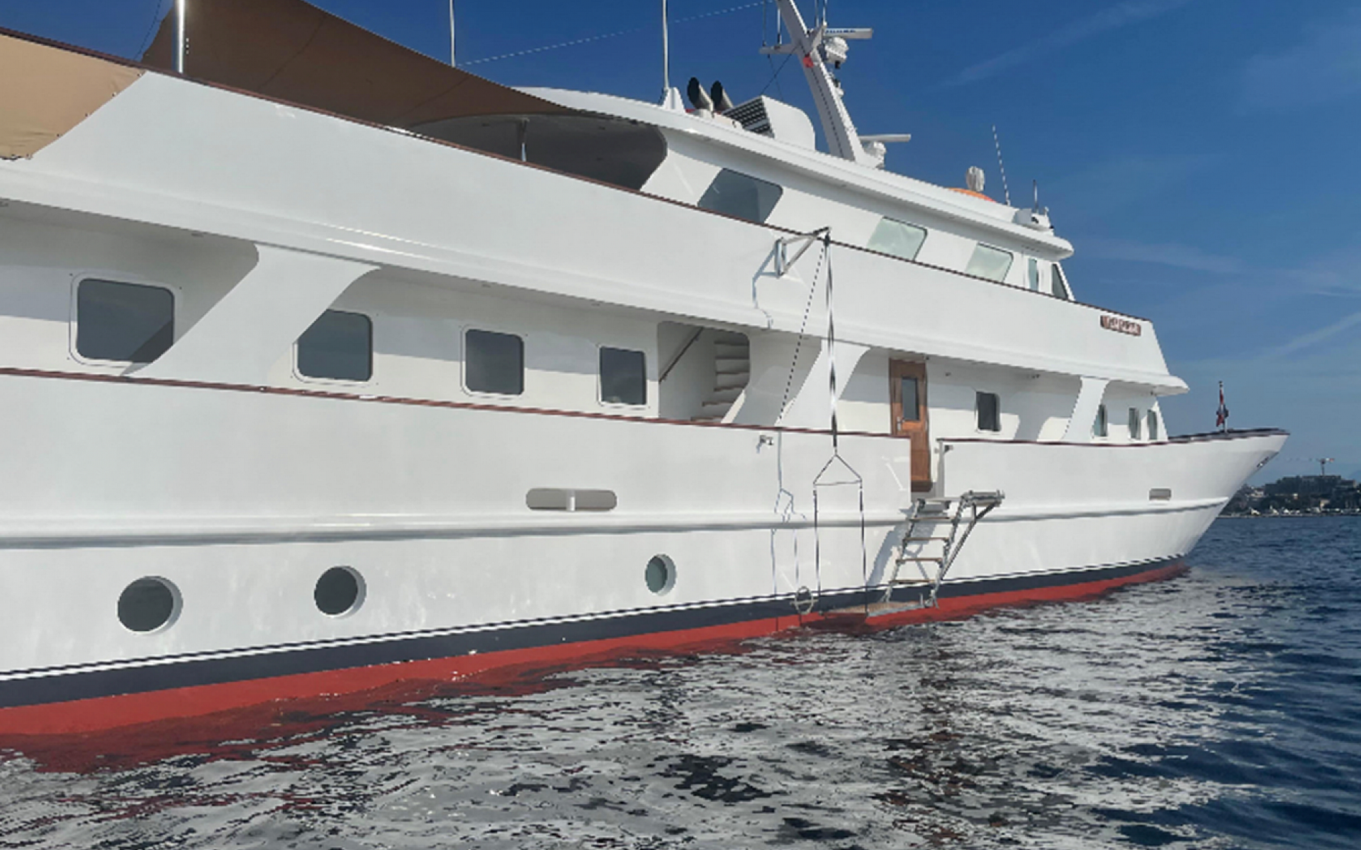 Welcome on board M.Y. Trafalgar Escape to a world of Classic Luxury Classic lines, luxury interior & over 50 years of history This iconic 40m displacement yacht was built in 1975 and run successfully for charter before being extensively re-fitted and rebuilt in the United Kingdom then relaunched in 2016. Over the years, this Iconic Motor Yacht, has welcomed many guests, crossed miles of open water, held some amazing parties and even graced the "silver screen"... Yes, she was a Bond Girl! M.Y. Trafalgar (ex Yildiz 10 & Moonmaiden II) underwent a full refit over 3 years from 2016, and has been enjoyed by her current owner since, using her Privately. She is again on the market, following an extensive work list, and is now being sold with Cook Islands Commercial Register should the new owner wish to charter her for others to experience and enjoy. She offers accommodation for 10, with full width Master double aft, twin port, double starboard, double VIP midships with the owners suite on the main deck. There are 3 dinning areas inside and out, and a sheltered outdoor lounge. CONSTRUCTION Hull/Superstructure: Steel / Steel Deck material: Teak CLASSIFICATION & CERTIFICATIONS Classification Society: without classification MCA: No ISM: No ISPS: No PERFORMANCE Cruising Speed: 10.0 knots Maximum Speed: 12.0 knots Fuel consumption at cruising speed: 100.00 (L/HR) Range (nm): 3500nm TANKAGE Fuel: 38,000 litres Fresh water: 21,000 litres Grey water: 750 litres Black water: 750 litres MACHINERY Engines: 2 x 12 cylinder 600 hp Deutz diesels Engine hours: Port: 5,237, Stbd: 5,375 (since 2007 rebuild) (16.09.2022) Generators: Kohler 100Kva (2009), Iveco 75Kva Generator hours: Kohler: 5,785, Iveco: 47,576 (since new) (16.09.2022) PROPULSION & STEERING Gearbox: 2 x Reintjes Rudder control: Simrad STABILISERS Stabilisers at anchor: No Stabilisers underway: Yes Stabilisers details: Naiad Hydraulic fins MECHANICAL Stabilisers: Naiad hydraulic fins with Multisea II control Fuel flters: Racor Air compressors: 2 x ERVOR with 2 x 100L tanks for engine start Air conditioning: Compact Clima unit in each area Water Makers: 2 x Cathelco 200l/hr Sewage system: Tecnicomar Ecomar 16 COMMUNICATION & NAVIGATION EQUIPMENT Navigation Equipment: Radar: FR-7062 Echosounder: Raymarine ST60 Wind display: Raymarine ST60+ GPS: Raymarine A65, Furuno GP32 Rudder control: Simrad FU50 Rudder angle display: Simrad RI35 Autopilot: Simrad AP50 Electronic Compass: Simrad IS80 Satellite Compass: Furuno Magnetic Compass: John Lilley & Gillie Ltd Communications Equipment: VHF: Radio Ocean RO4800 Handheld Radios: Simrad TC50 GMDSS Radio Navtex: ICS Nav5 Inmarsat: Furuno Mini-C GMDSS Control Panel: ICS MF/HF Tranceiver: ICOM ENTERTAINMENT Speakers throughout main saloon, aft deck and upper deck. Sony Bravia TV in master stateroom with Apple TV DOMESTIC APPLIANCES, EQUIPMENT & LAUNDRY Galley and pantry (all new 2016): 2 x Hotpoint 4-ring ceramic hobs 1 x Double galley extractor 2 x Bosch fan oven 1 x Microwave convection oven 1 x Under counter fridge 1 x Under counter freezer 1 x Hotpoint full height fridge 1 x Hotpoint full height freezer 1 x Hotpoint dishwasher 1 x Sink in galley 1 x Sink in Pantry Laundry: 2 x LG Washing machines 2 x Bosch Series 4 driers 1 x Sink DECK Ground tackle: Anchors: 2 Chain: 2 x 140m Crane: Rated to 1.5 tonnes (2016) Passerelle: Manual operation PAINT JOB: Full re-paint in 2016 TENDER & TOYS Novurania EQ 540 tender - 10 man capacity 3.5m Walker Bay tender with 25hp outboard Yamaha jet-ski Note: Subject to change and/or negotiation during the buying process. SAFETY & SECURITY Fire systems: ARC Fire Alarm Control System, repeater in Crew Mess Handheld fire extinguishers in all areas FM200 in Engine Room CCTV aft and in Engine Room REFIT LOG 2012 – 2016 refit, Southampton UK Ultrasound hull Plate, tank top and frame repairs where necessary Remove wasted steel under capping rails and replace with stainless steel section Install new black and grey water tanks Install new bilge, fire line, fuel system and black and grey water pipework Paint bilges and engine room Install new crane Install new bilge alarm system Install 2 new water makers Install new fire detection system including new fire cylinder Install fuel tank sight gauges Galvanise anchors and chain Replace cutlass bearings Replace scupper pipework Replace engine room floor plates Renew all deck hatches Install new shore power Install new engine room extraction and air intake dampers Rewire bridge and cabins Remove existing crew quarters and rebuild Remove existing galley and rebuild Remove existing laundry room and rebuild New generator exhausts Service fuel injectors Replace intercoolers Re-lag engine exhausts Install new bellows, manifolds and other fttings Various engine and generator service works Remove and service anchor winches Balance props and coat in prop speed Spin shafts and lathe couplings Align shafts Lay new teak decks Install new deck heads Install new exterior lighting Paint hull and superstructure Strip down and varnish all interior wood work Winter 2016 – 2017 Replace main engine heads Replace exterior furniture and tender covers Replace air conditioning and water pumps Install new side boarding ladder Winter 2017 - 2018 Replace injector pump Service Iveco generator Service heat exchangers and pumps Replace sun deck awning and dodgers Paint sun deck superstructure Winter 2018 – 2019: Install new main engines exhaust insulation Modify exhaust brackets Remove inboard/outboard engine to main tender and service Install new engine room extraction vents New covers for crane and deck furniture Rebuild fire lines Currently lying: Valencia To arrange a private viewing, please contact Smart Boat Sales on +44 7985 154373 where our team will be pleased to assist with any queries.