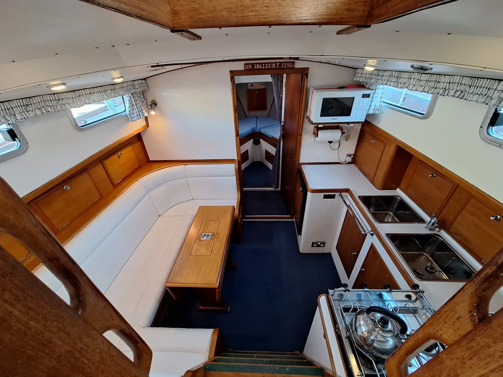 - 7 berths in two cabins + the lower and upper saloon and two heads