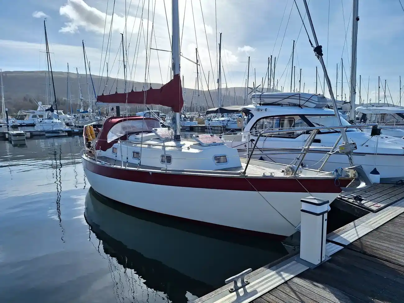 - Wide hull topside stripe at the gunwale - Burgundy