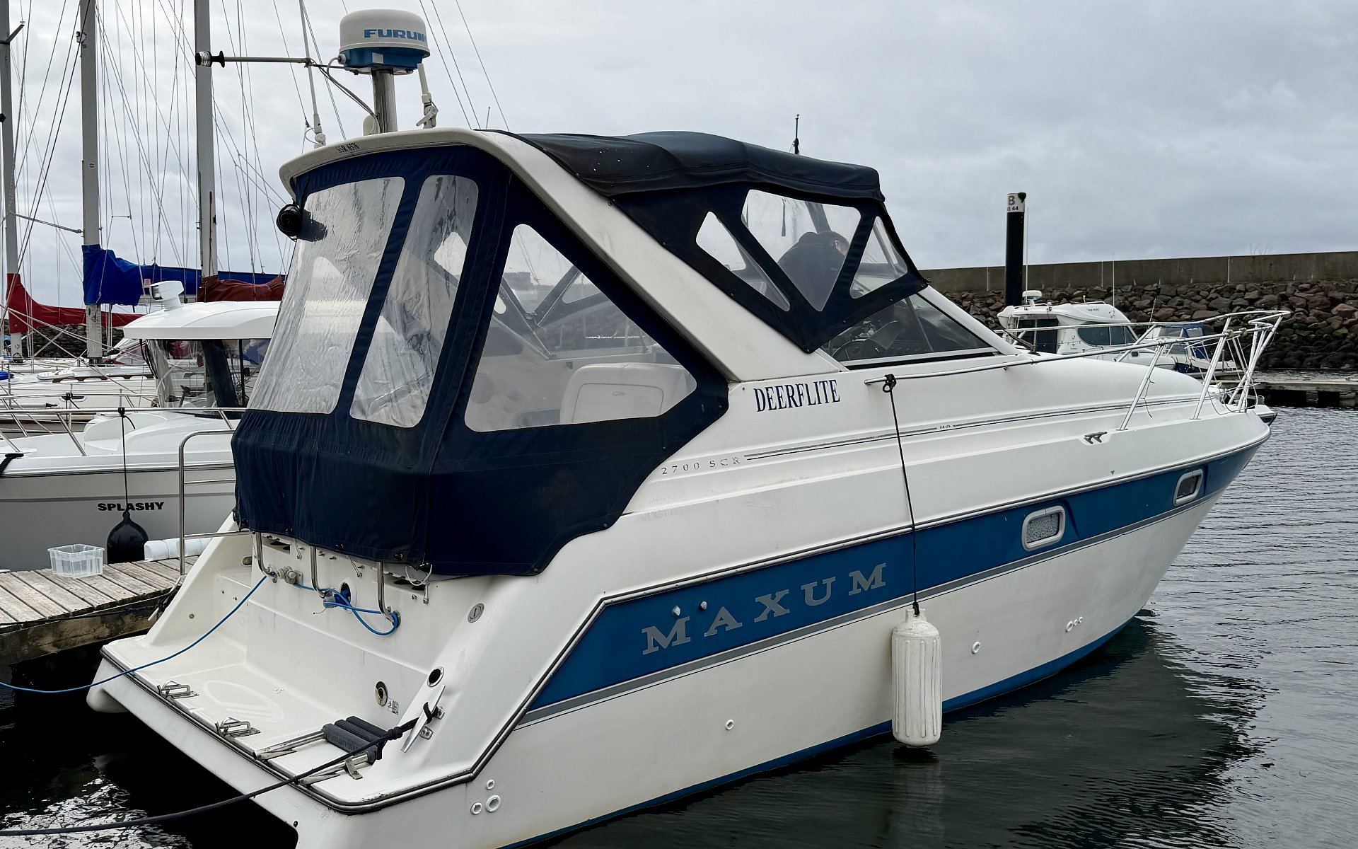 Smart Boat Sales is delighted to present this clean and extensively modernised example of the ever-popular Maxum 2700 SCR, offering comfortable family cruising with twin petrol sterndrive performance. She benefits from refreshed interior, modernised galley and smooth MerCruiser 4.3LX V6 engines; 836 hours with Alpha One drives.