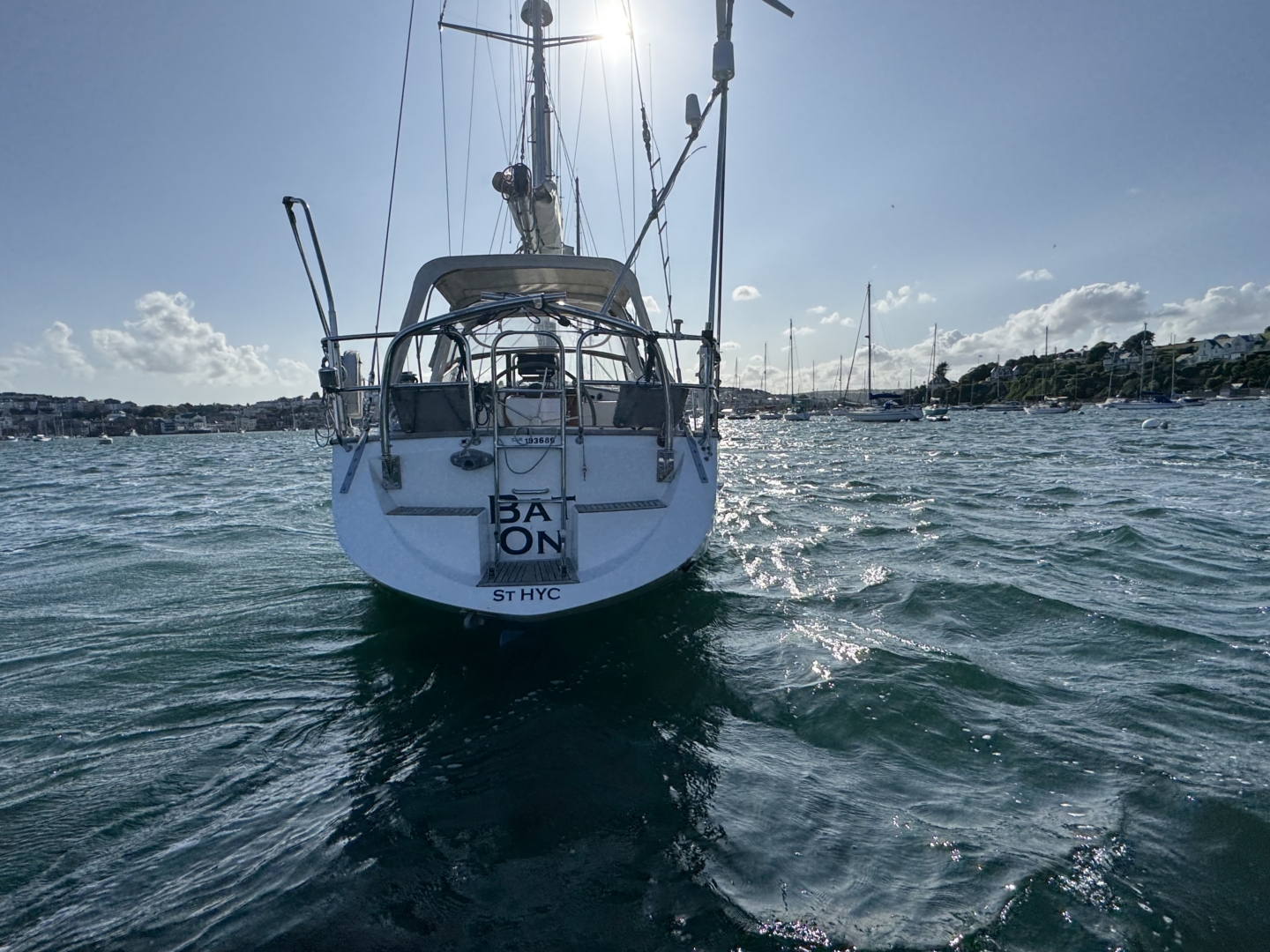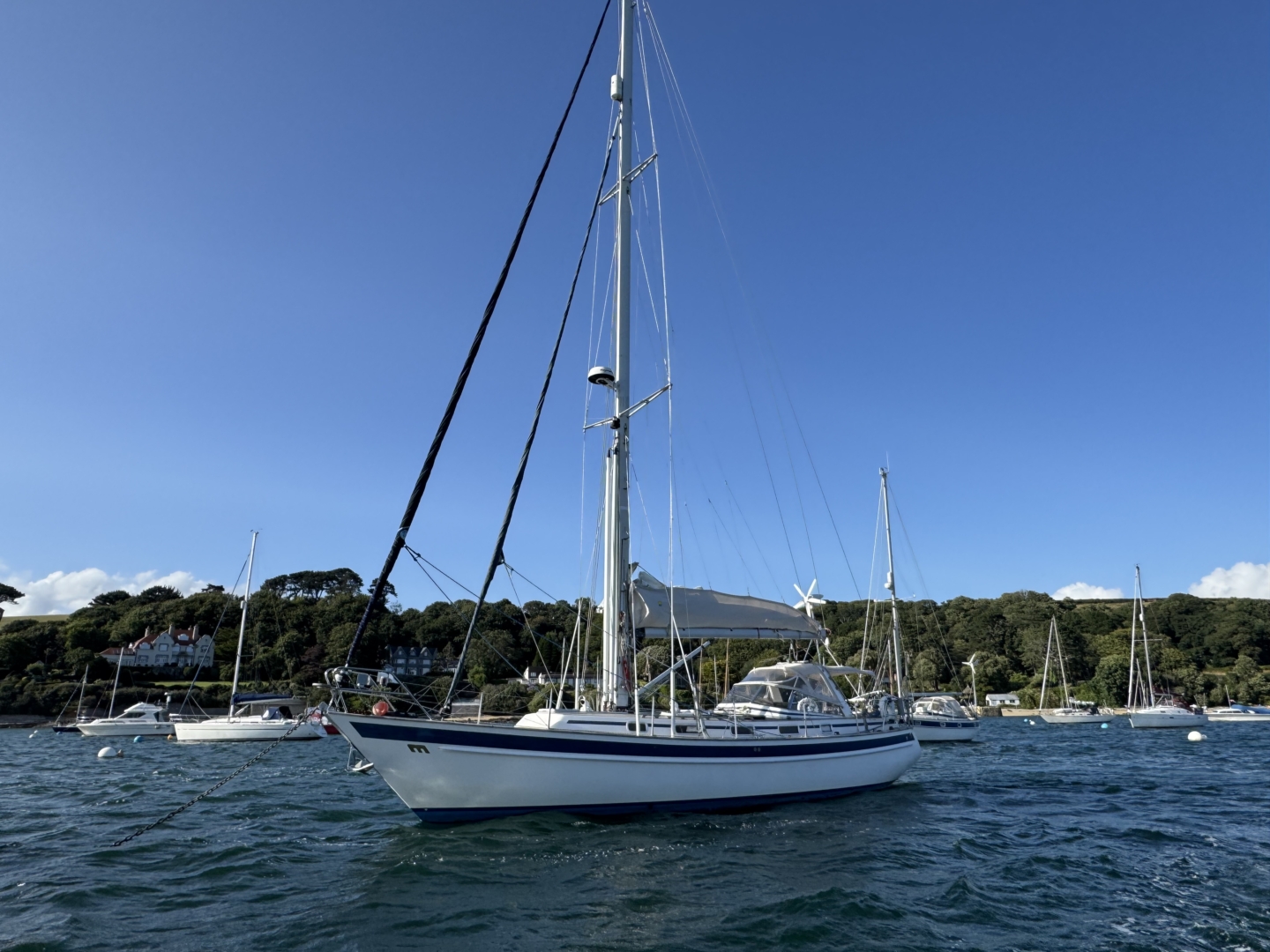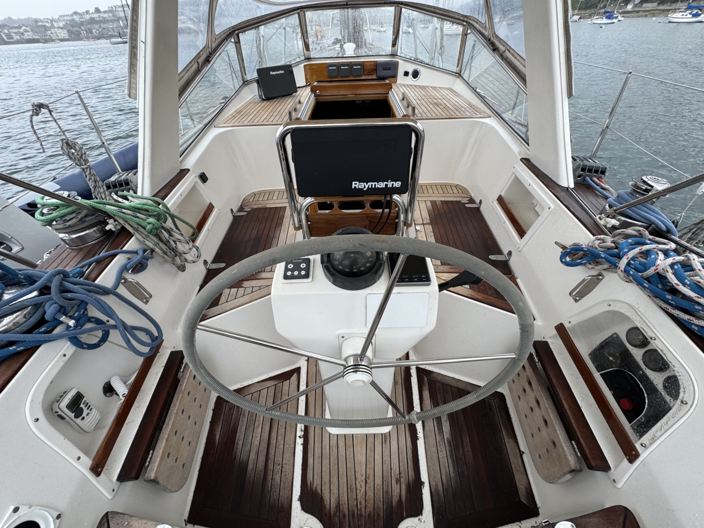 - Good wide easily navigated side deck and raised coachroof with Teak grab handles
