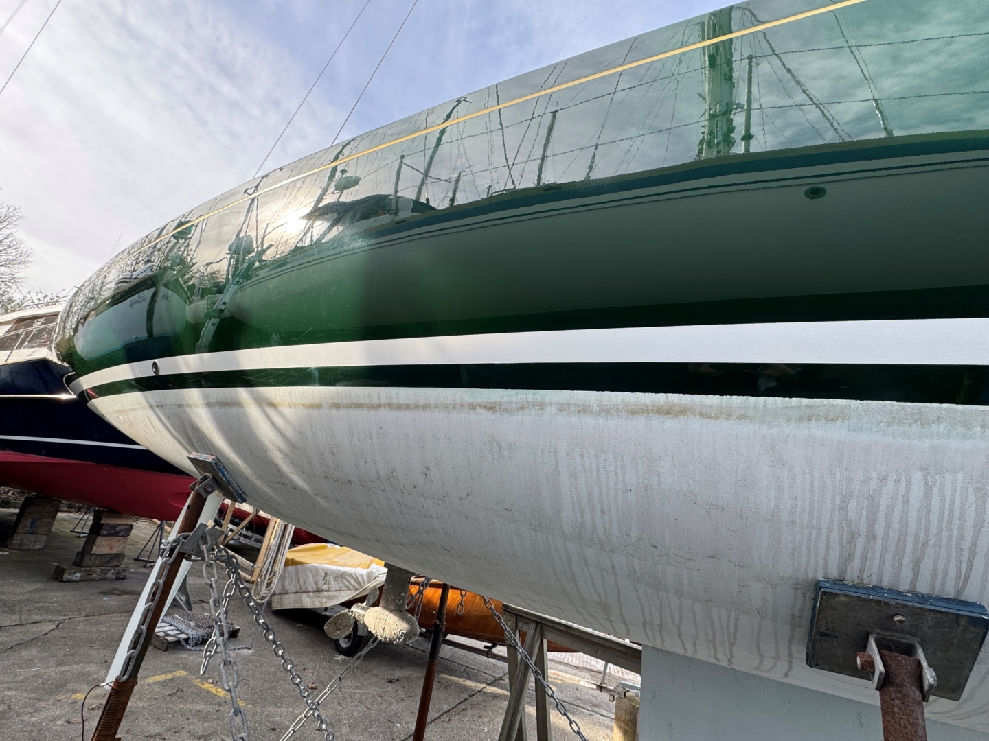 - Epoxy coated from new below waterline