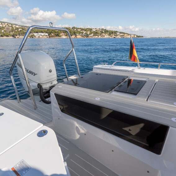 - Open aft deck area with enlarged storage under deck with integrated locker for windlass / bow thruster battery