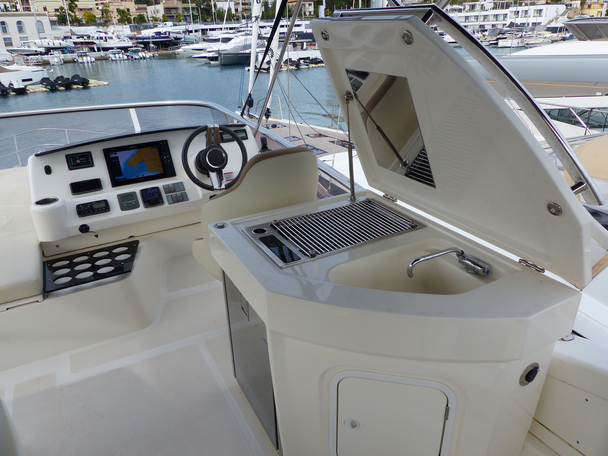 - Raymarine hybrid touch suite including GPS Chartplotter (internal and outside flybridge stations)