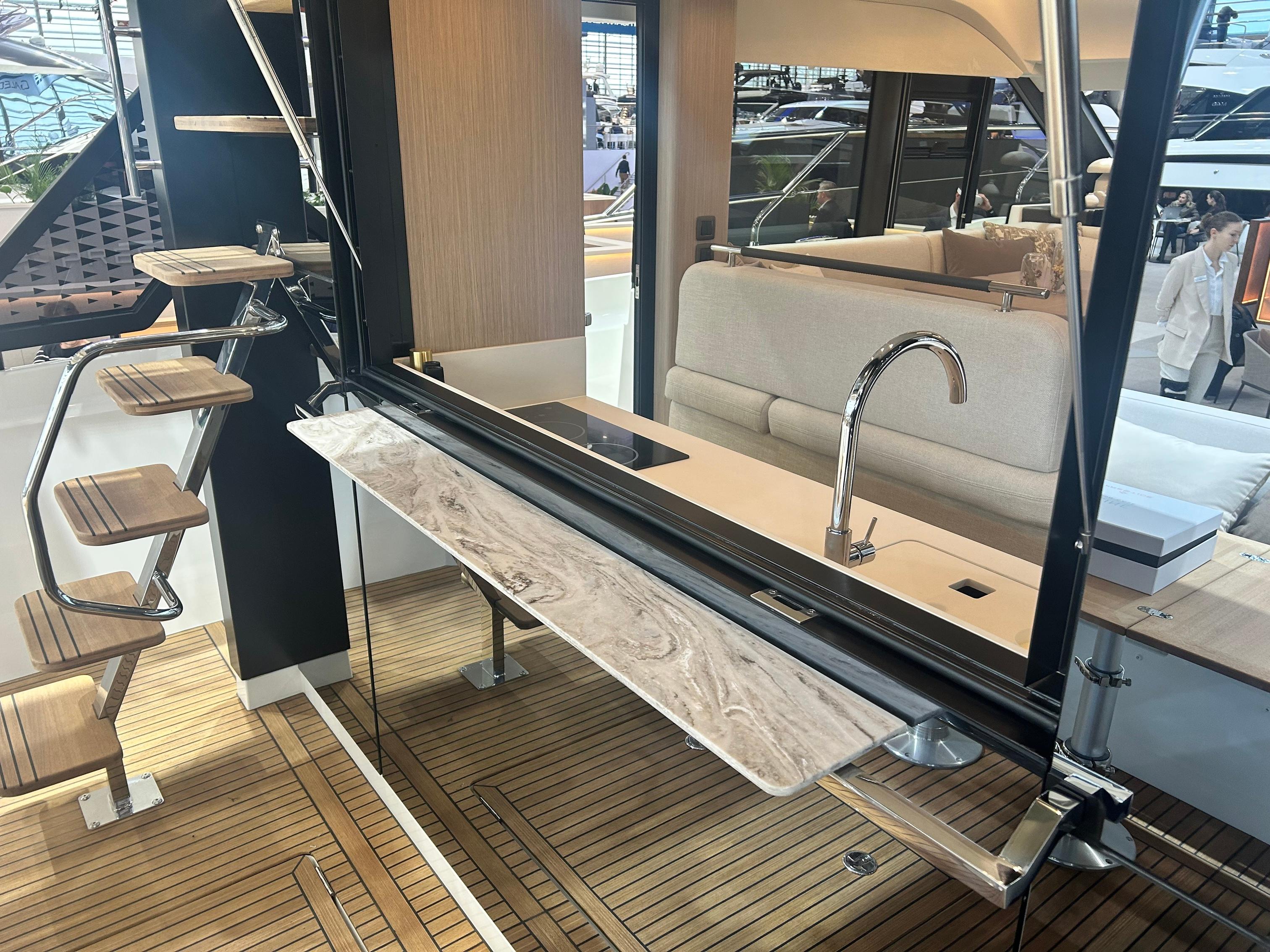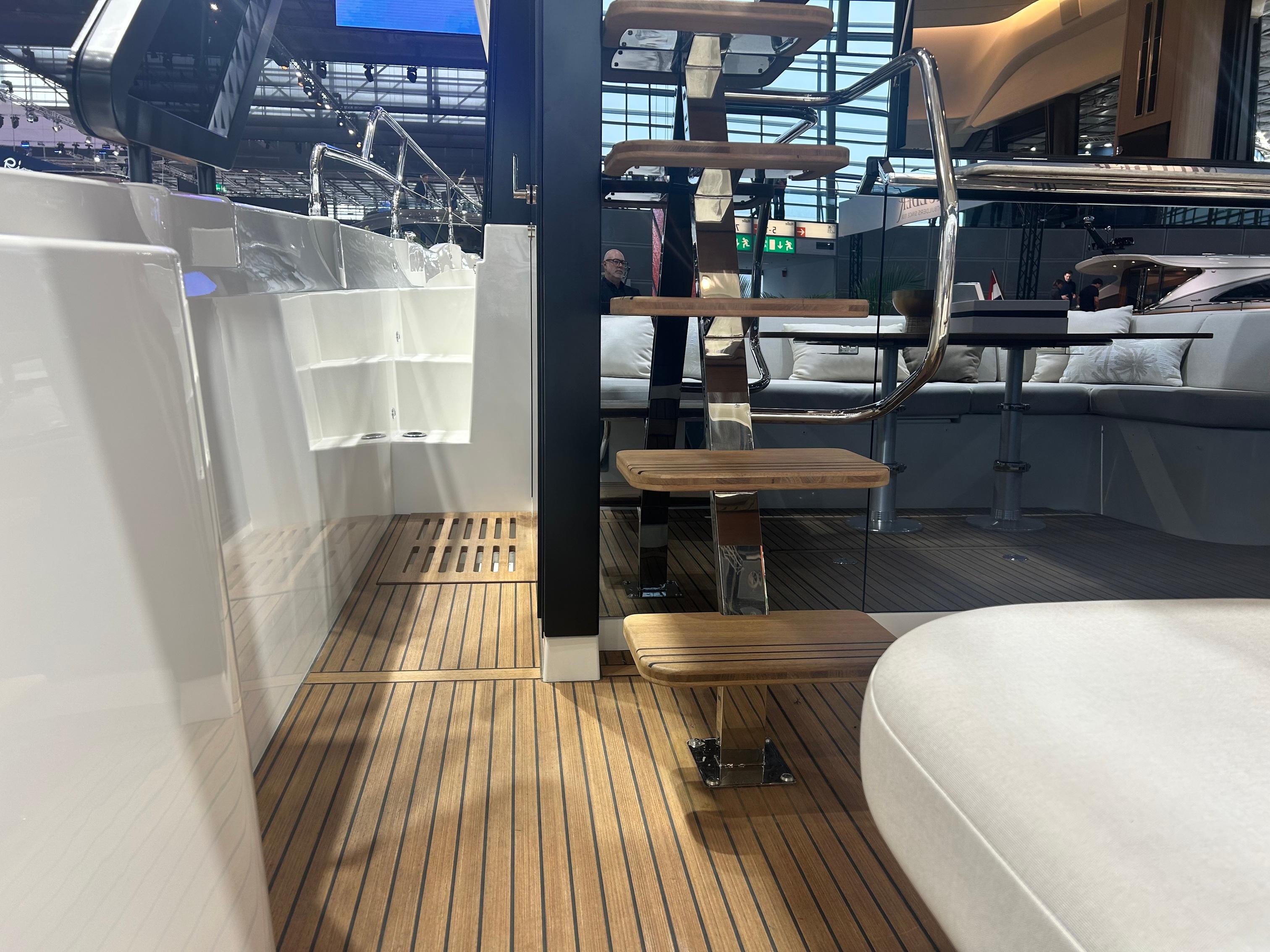 - Electric windlass with wired remote in anchor locker, windlass controls at lower helm and flybridge